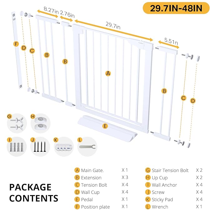 • Ideal for Wide Spaces: This baby gate stands 30.5 inches tall and adjusts from 29.7 to 48 inches wide; fits most doorways and hallways; ensures your little one explores safely at home