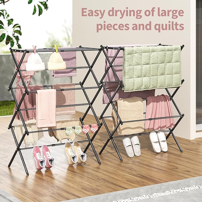 • Material: The APEXCHASER clothes drying rack is made of all metal and has a rust-resistant coating, which can endure different weathers for indoor and outdoor use, making it perfect for apartments or small living spaces.