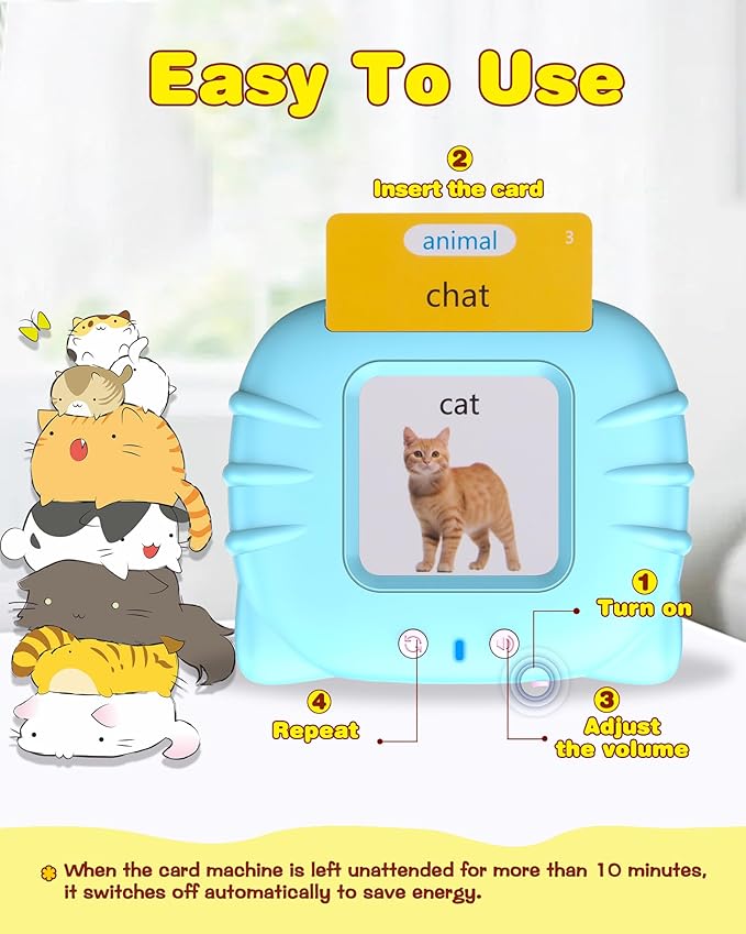 • 【Inspire & Enhance language skills】This talking flash cards design includes vivid colors and fascinating sounds that attract children's attention and promote their interest in learning. Ideal for sensory toys like autism sensory toys, this interactive device provides a unique sensory experience that captivates toddlers' minds and helps improve their speech development.