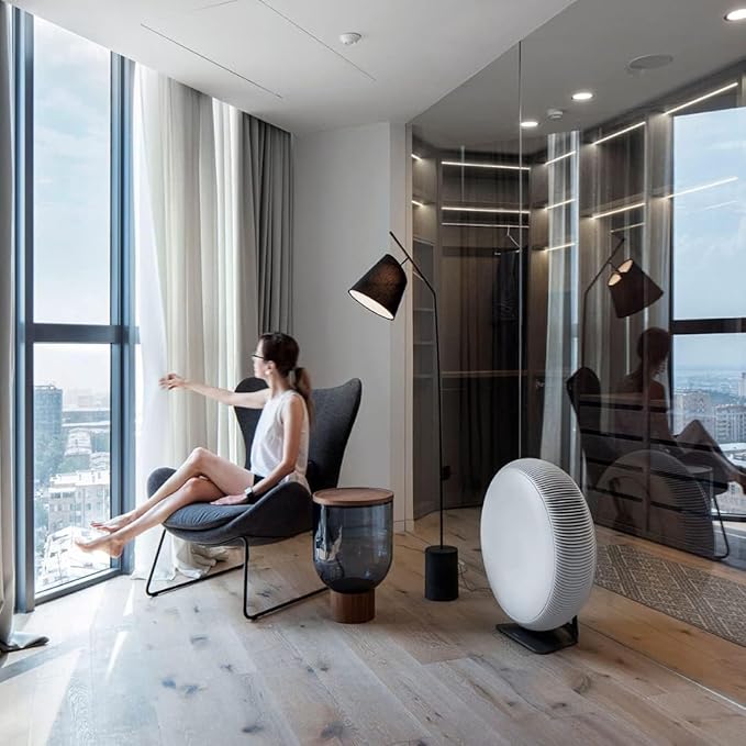 • QUIET, SPACE SAVING DESIGN: One of the quietest, high-performance air purifiers on the market. Slim, minimalist design with a depth of only 25 cm (10 inches) integrates beautifully into any space. Made at IQAir’s state-of-the-art production facility in Germany. Dimensions (including stand): H 27.1” x D 10” (H 688 x D 254 mm)