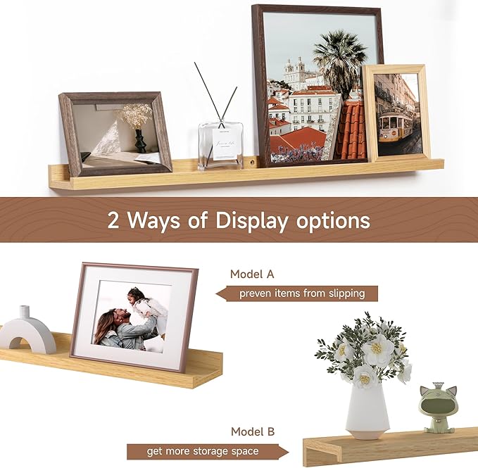 • MEMORIES SHOWCASE SHELF: Do you have a lot of memorable photos, but don't know how to display them, Fun Memories picture ledge shelves (especially in large sizes) are perfect for you to display them! With our hanging racks, you can store and display different types and sizes of photo frames in one place without worrying about
