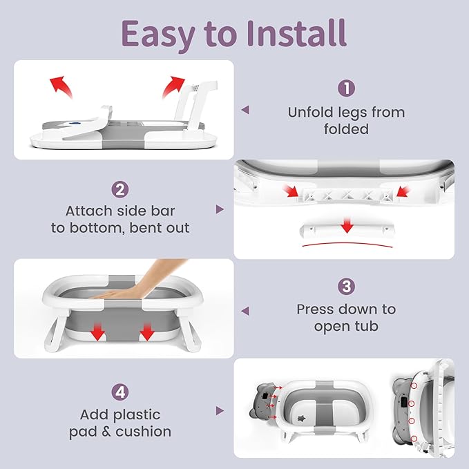 • Space-Saving Fold: Unique folding design collapses flat for easy storage, making this Kerbwry baby tub suitable for small homes or travel