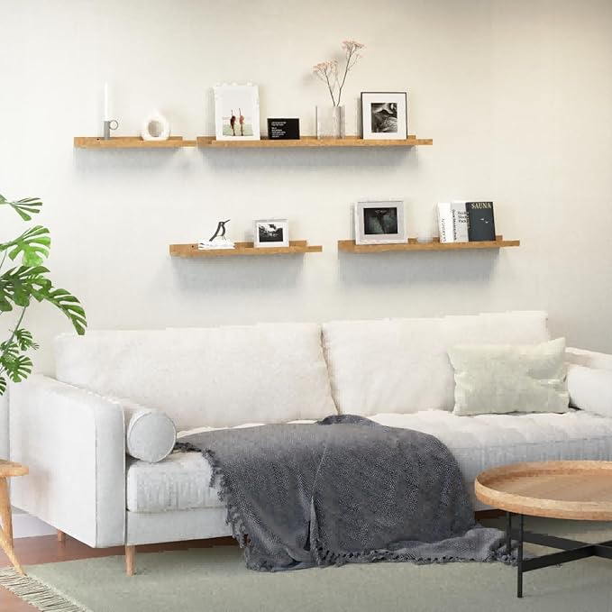 • Sleek and Minimalist Design - The clean lines and minimalist design of picture ledge shelves add a touch of elegance to any room decor. Whether it's your bedroom, bathroom, living room, or room corner, these wall shelves seamlessly blend with your existing home decor, creating a stylish and organized atmosphere.