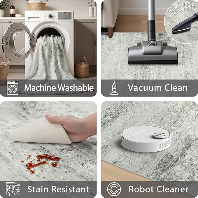 • 【Machine Washable& Easy To Maintain】The 5x7 rugs for living room are easy to maintain. It can be easily cleaned by vacuum on the low setting or by shaking off the dust directly outdoors. Machine washable features have been a practical and time-saving benefit, cleaning is a breeze, particularly for high-traffic areas or homes with children or pets. Please be advised not to use bleach as it may harm the fabric!