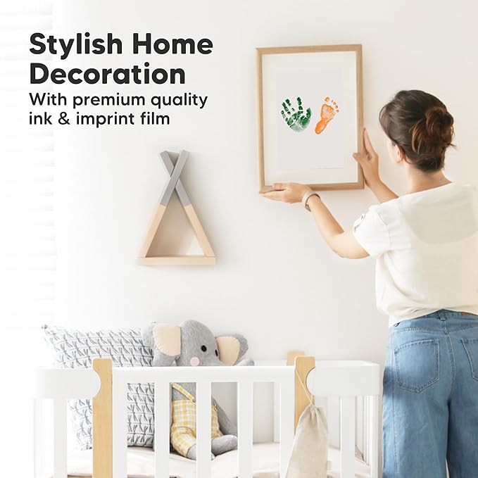 • No Mess, No Residue - Designed to create your baby's hand and footprints without leaving ink residue on your baby’s hands and feet. Our clean touch ink pads use a “zero ink contact” imprinting method to allow beautiful stamping of your baby’s hands and feet on art cards, memory book journals and other paper-based baby keepsakes. Mess free ink pad for babies.