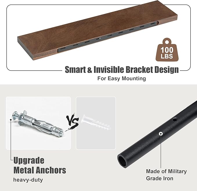 • EASY TO INSTALL: To ensure long-lasting durability, we recommend mounting the shelf onto a solid surface such as a stud, masonry (concrete/brick), or any robust surface. Hardwares are included, with our upgraded metal bracket, installation is quick and easy. All you need is a drill and a tape measure.