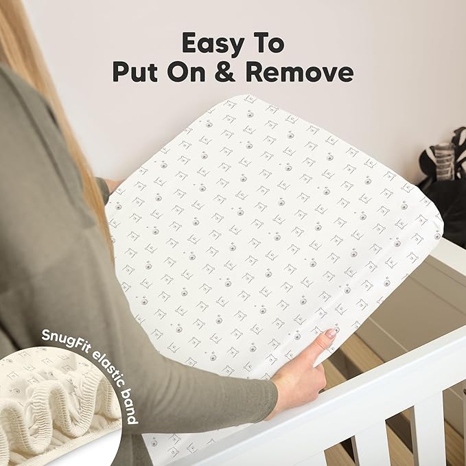 • High Quality Elastic Band - Our organic cotton crib sheets, use premium elastic SnugFit Band seamlessly concealed to ensure these standard crib sheets stay in place securely for safe and soothing sleep.
