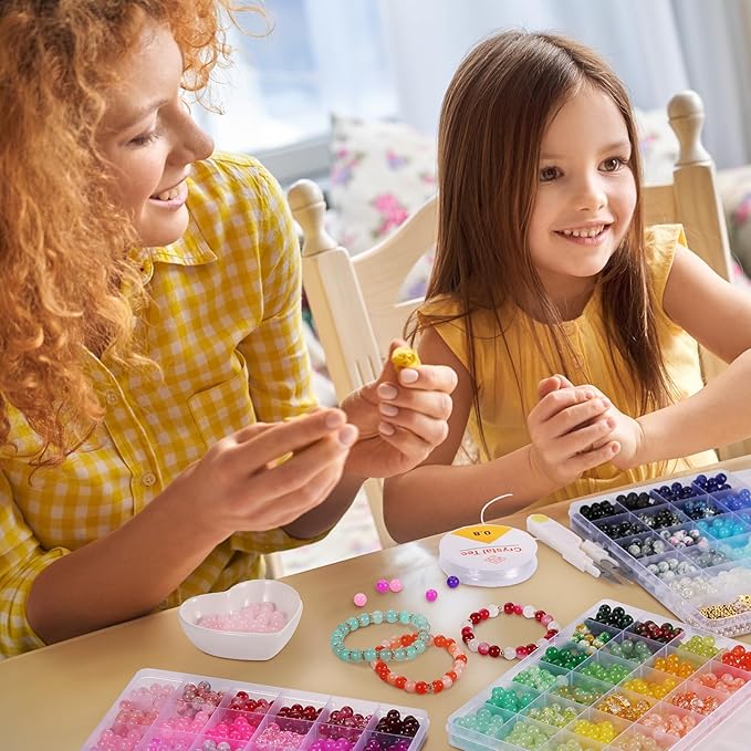 • 【Quality Glass Beads Kit】Our glass beads are made of premium glass material, all round beads have been finely polished to making each bead more textured, sleek and shiny, lightweight and waterproof, not easy to fade, comfortable to wear. All materials provided are completely safe and kid-friendly for girls ages 4+