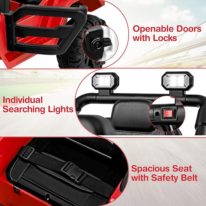 • 【Safe & Reliable Construction】 Constructed from BPA-free material, the electric ride on truck is equipped with adjustable safety belt, lockable doors to ensure durability and safety. It complies with ASTM and CPSIA standards, serving as a reliable and perfect gift for boys and girls over 3 years old.