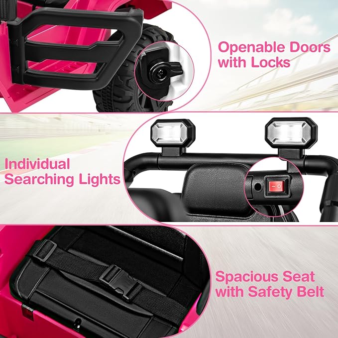 • 【Safe & Reliable Construction】 Constructed from BPA-free material, the electric ride on truck is equipped with adjustable safety belt, lockable doors to ensure durability and safety. It complies with ASTM and CPSIA standards, serving as a reliable and perfect gift for boys and girls over 3 years old.