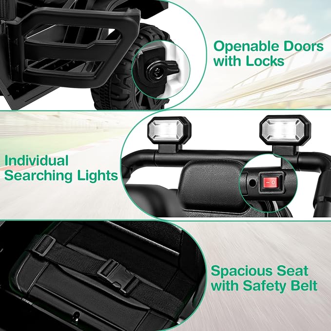 • 【Safe & Reliable Construction】 Constructed from BPA-free material, the electric ride on truck is equipped with adjustable safety belt, lockable doors to ensure durability and safety. It complies with ASTM and CPSIA standards, serving as a reliable and perfect gift for boys and girls over 3 years old.