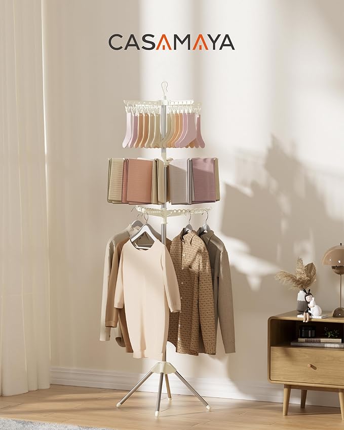 • [360 Rotating Clothes Rack] Equipped with a 360-degree swivel design, this laundry drying rack provides you with the convenience of hanging and accessing your clothes.