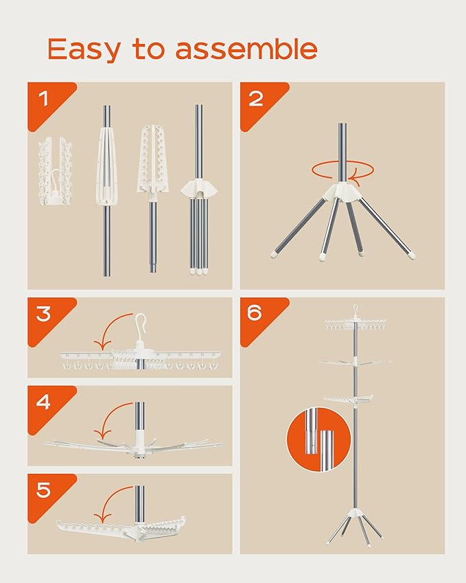 • [Easy to assemble and carry] This drying rack can be installed in just four steps and can be completed within three minutes. The easy to disassemble and assemble design makes it possible for you to carry it with you when you need to dry your clothes on a camping trip.