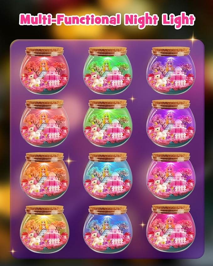 D-FantiX Unicorn Princess Toys Terrarium Kit for Kids, Led Night Light Birthday for Little Girls, DIY Arts and Crafts Science Kit for Kids Age 3 4 5 6 7 8-12 Year Old