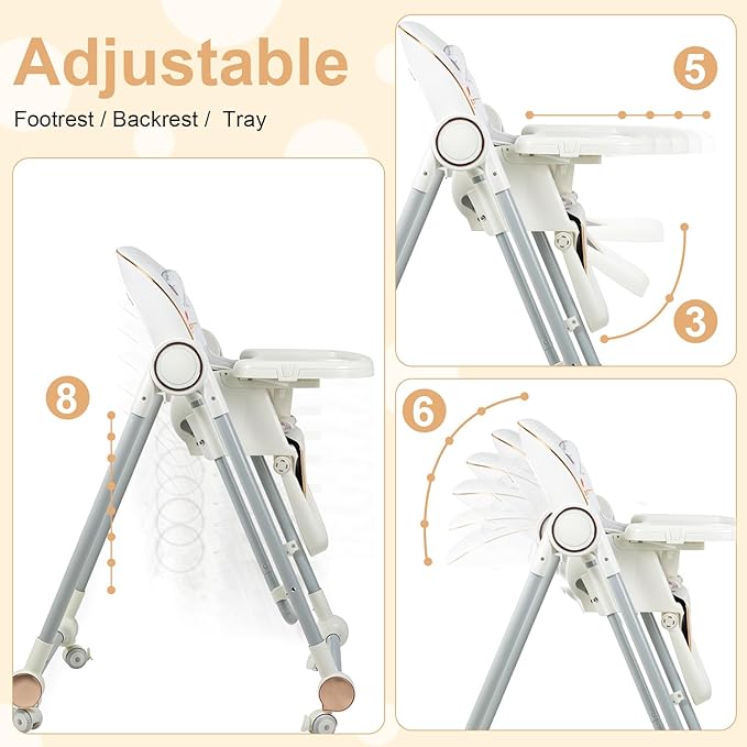 Foldable High Chair for Babies and Toddlers,Baby Swings for Infants 6-36 Months Old, Portable Baby Chair with Adjustable Backrest, Footrest, Tray, and Seat Height, Detachable Leather Cushion