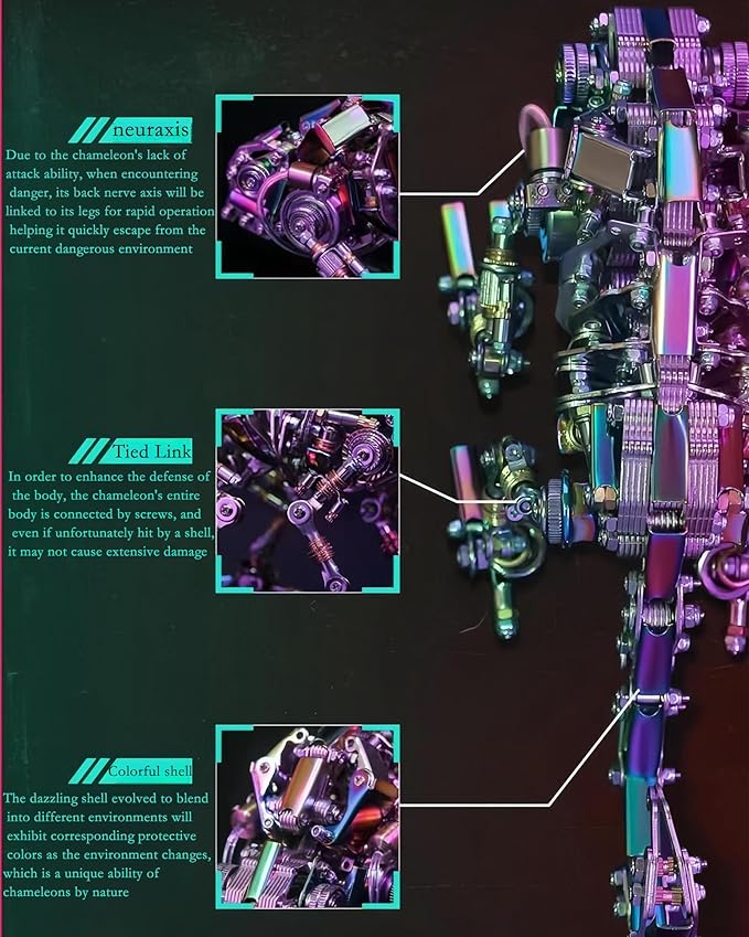 • Challenging 3D DIY Experience: This chameleon metal mechanical model is made up of 820 parts and is suitable for teenagers and adults aged 16 and above. Creating a set of metal models is very challenging, which may take over 8-12 hours, depending on your observation and patience. After hours of focused work and completing your own amazing craftsmanship, you will experience a strong sense of achievement and stress relief
