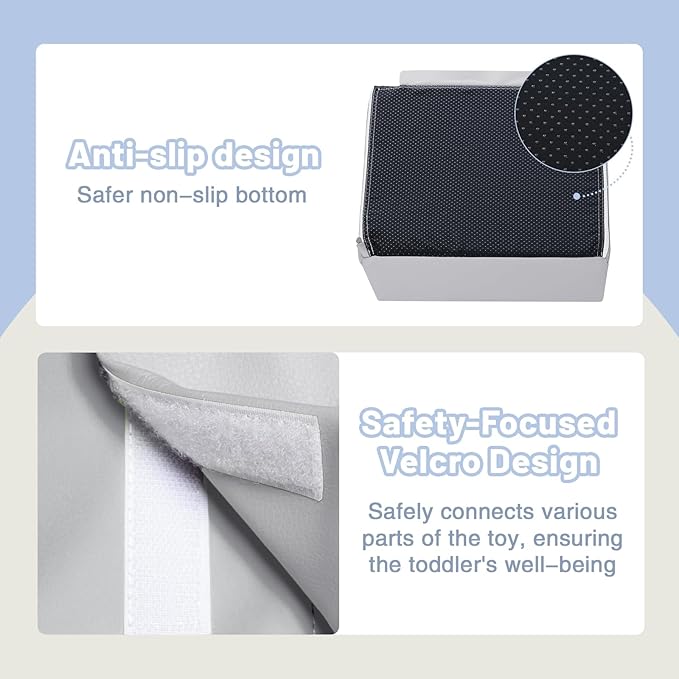 • Attention to Detail: This baby climbing blocks contains Velcro connections that allow parents to simply attach the various components, as well as a non-slip bottom. This baby climbing toys indoor ensures infants' safety and stability while playing