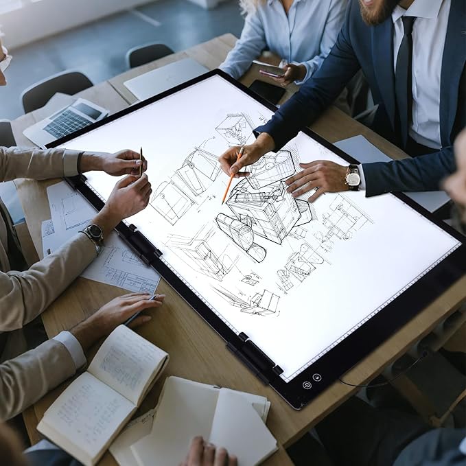 • 【 Eye-Caring Illumination 】 Prioritize comfort in your creative process with the tracing Bright light pad. Emitting 3 colors light up to 3000 Lux and maintaining a color temperature of 3000k-6500K, this light box tracer for tracing eliminates shadows and glare, preventing eye strain and fatigue during prolonged work periods.