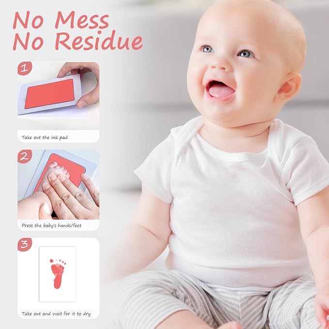 • [No Mess,No Residue]:This inkless baby hand and footprint kit is clean touch and no residue. Use this baby hand and footprint kit,you will get clear, complete, non-blurred baby handprint.This mess free ink pad for babies is perfect as baby shower gifts for newborn baby.