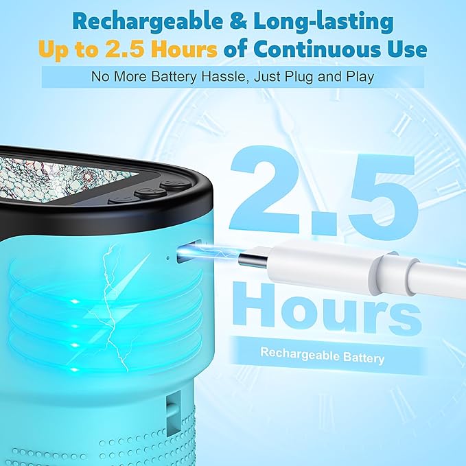 • Rechargeable and Long-Lasting: Equipped with a rechargeable battery, this handheld microscope for kids ensures hours of continuous exploration. It’s a great portable microscope for extended outdoor or indoor study sessions.