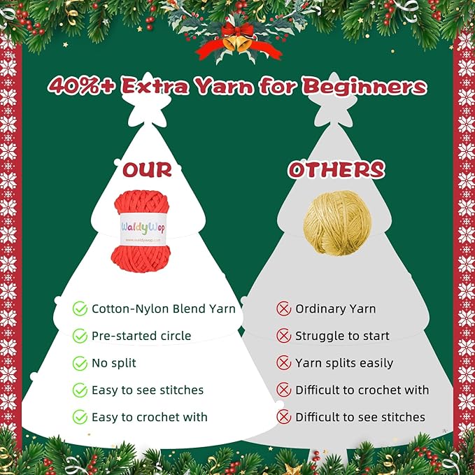 • BEGINNER-FRIENDLY COTTON-NYLON BLEND YARN & PRE-STARTED YARN: WaldyWop beginner-friendly cotton-nylon blend yarn is designed to resist splitting, making stitches easy to see. To help you get started smoothly, we’ve pre-crocheted the first round, reducing the initial difficulty and giving you a head start on your project.