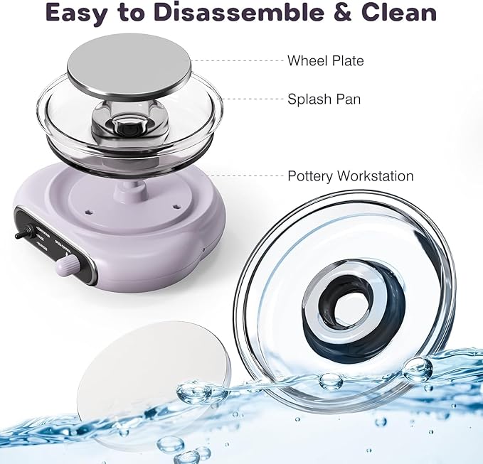 • Compact & Easy to Clean: Lightweight and compact, this pottery wheel is easy to store and use. The removable wheel plate and splash pan simplify cleaning, ensuring a smooth experience after each creative session