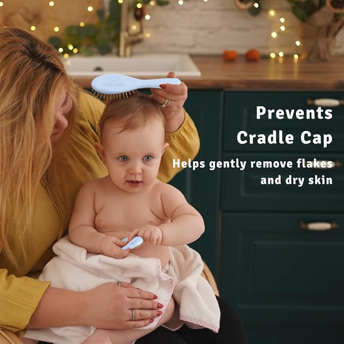 • Prevents Cradle Cap - Funfushka's all natural goat bristle brush provides gentle exfoliation to the baby's scalp. Regular, gentle brushing can help remove the flakes of the cradle cap without causing discomfort or irritation for your little one.