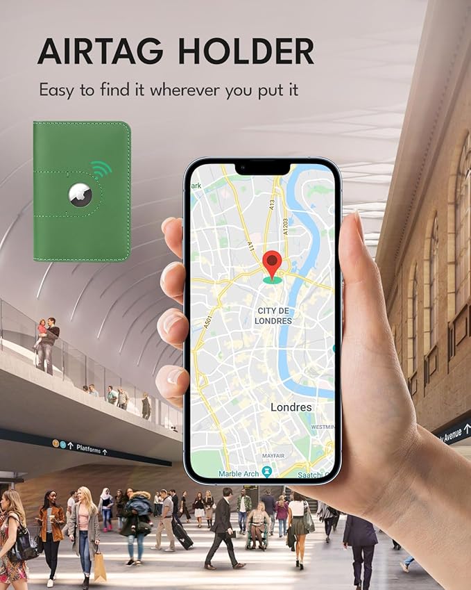 ALLIVE Genuine Leather Passport Holder With Airtag for Women Men - Travel Must-Haves, Airport Essentials, Passport Cover Gift - Green