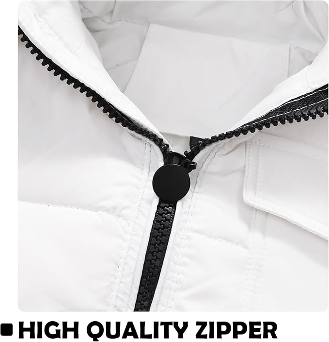 • High quality material: Toddler snow suit bib coat is made of ultra-soft white duck down padding, and the premium polyester fiber lining protects the baby's delicate skin and acts as a slight waterproof (but do not wear it out in heavy rain).