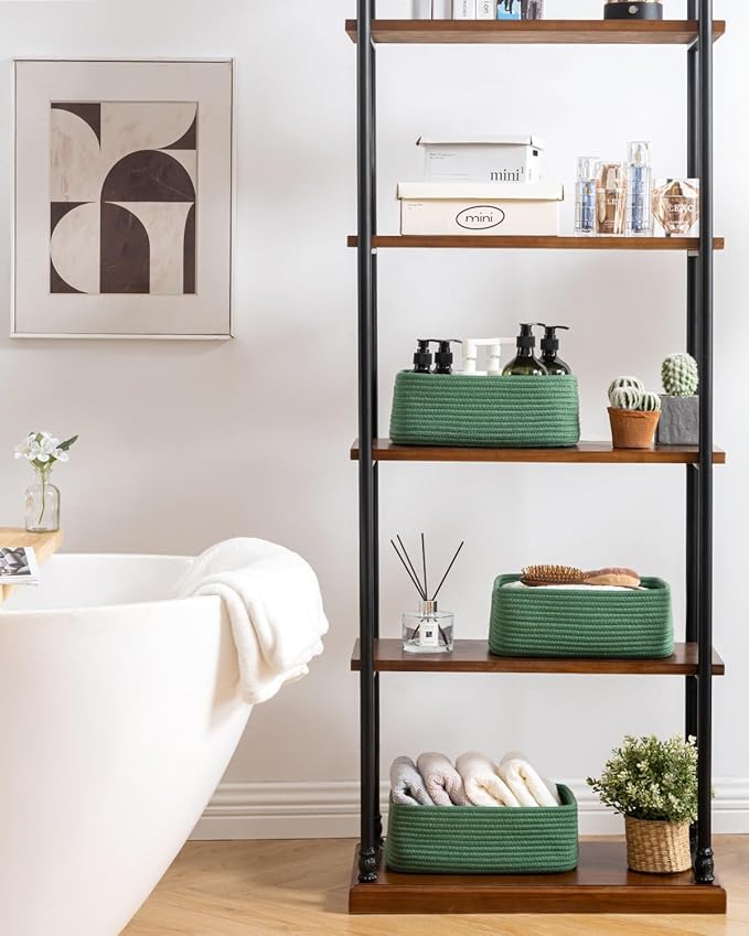 • [ Elegantly Designed to Match Any DΓ©cor ] Our small rope basket creates a minimalist appearance, and it adds a touch of warmth and texture to any room. The classic solid color design ensures seamless integration with your existing aesthetics, complementing any decoration. Perfect as decorative storage baskets for shelves, cabinets, and any open display space, making them a stylish and practical addition to any decor, enhancing the overall aesthetics of your room