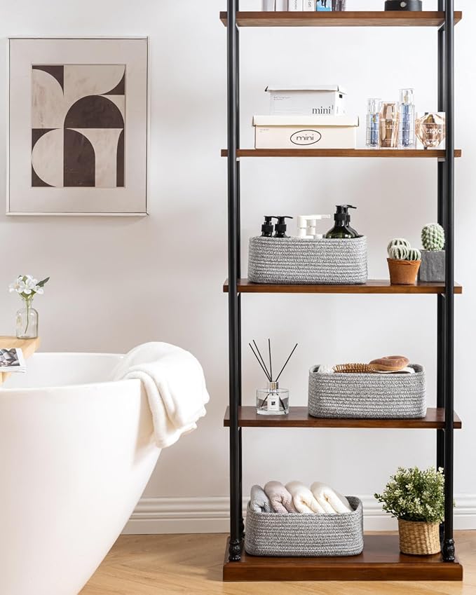 • [ Elegantly Designed to Match Any DΓ©cor ] Our small rope basket creates a minimalist appearance, and it adds a touch of warmth and texture to any room. The classic solid color design ensures seamless integration with your existing aesthetics, complementing any decoration. Perfect as decorative storage baskets for shelves, cabinets, and any open display space, making them a stylish and practical addition to any decor, enhancing the overall aesthetics of your room