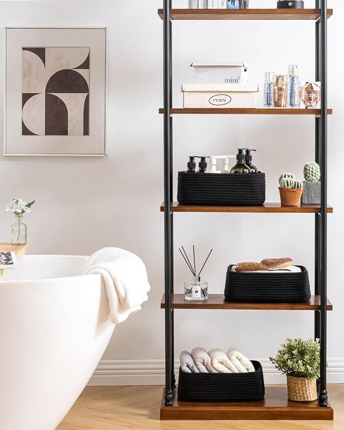 • [ Elegantly Designed to Match Any DΓ©cor ] Our small rope basket creates a minimalist appearance, and it adds a touch of warmth and texture to any room. The classic solid color design ensures seamless integration with your existing aesthetics, complementing any decoration. Perfect as decorative storage baskets for shelves, cabinets, and any open display space, making them a stylish and practical addition to any decor, enhancing the overall aesthetics of your room