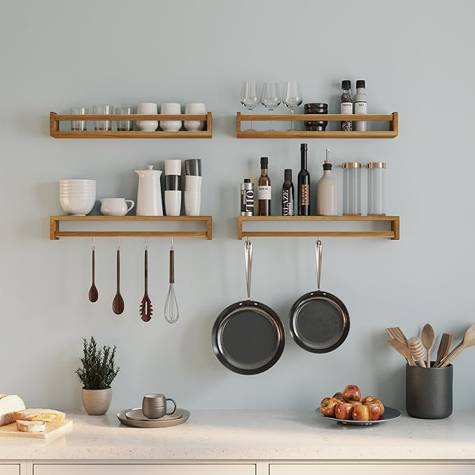 • [Versatile Nursery Shelves] - Heimlove floating shelves offer two installation options, allowing you to mount them either upwards or downwards, effortlessly adapt them to fit any space or aesthetic.They are perfect as a chic bookshelf for a nursery, a display shelf for the living room, or a spice rack for the kitchen.