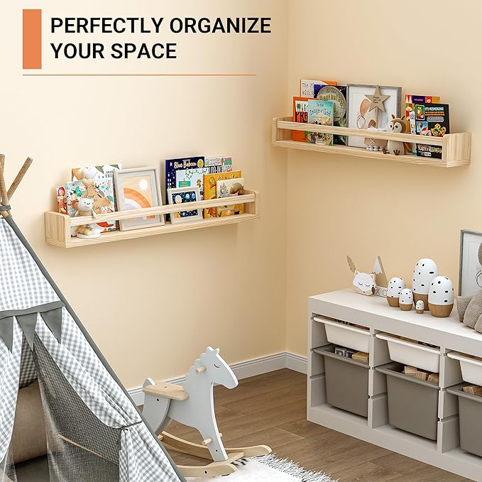 • [Natural Kids Bookshelf] - This wall bookshelf is meticulously handcrafted from solid pine wood, ensuring kids' safety. Its sturdy and durable construction keeps stored items secure. With a minimalist design, the wall shelf is great complements all styles of home decor