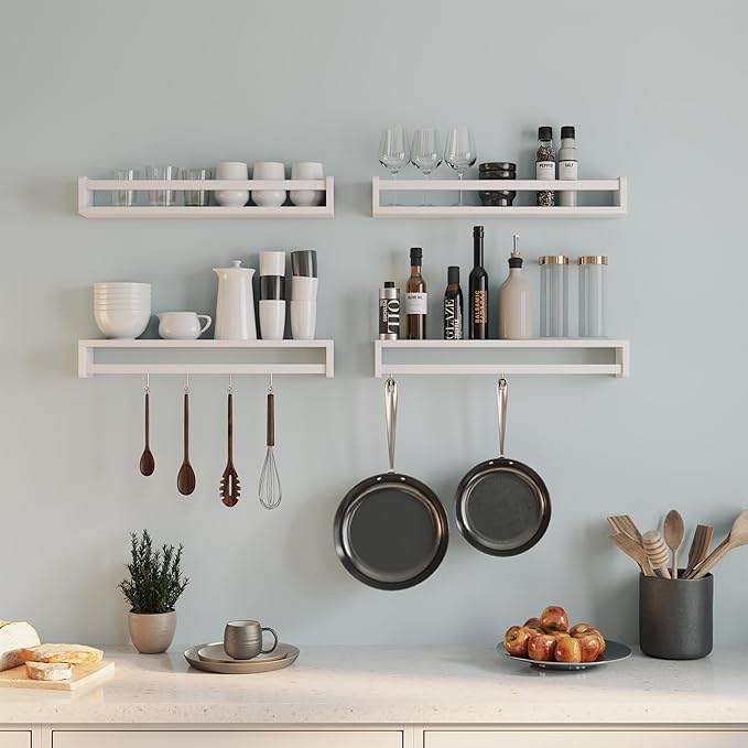 • [Versatile Nursery Shelves] - Heimlove floating shelves offer two installation options, allowing you to mount them either upwards or downwards, effortlessly adapt them to fit any space or aesthetic.They are perfect as a chic bookshelf for a nursery, a display shelf for the living room, or a spice rack for the kitchen.