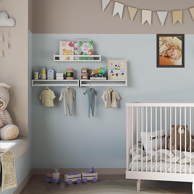 • [Experience Effortless Mounting] - Our nursery floating shelf comes with detailed step-by-step instructions and a complete hardware kit for easy installation. Measured size of 4” D x 24” W x 3.5” H, ideal size for nursery room.