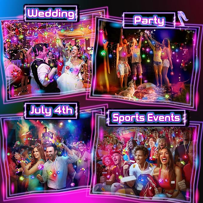 • GLOW PARTY FAVORS: LDE necklaces is a proper choice for carnivals or concerts, bouncing games, and birthday parties, which will add luster to your dark party, making people relax; In addition, it can also be given to others as a gift, game prizes, classroom giveaway.