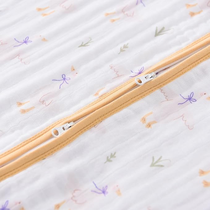 • 100% Organic Cotton: Crafted from 100% organic cotton and featuring four layers of soft cotton muslin, this toddler sleeping sack has a 0.5 TOG rating that delivers warmth while promoting breathability, making it ideal for year-round use. The muslin material is more breathable and softer than knit fabrics, ensuring a peaceful and comfortable night's sleep for your baby
