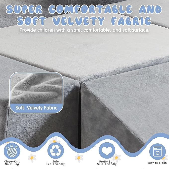 • 【SUPERIOR VELVET FABRIC】: These climbing blocks are soft , anti-static, no pilling, non-slip, durable fabric made. Firstly developed velvet fabric, have applied to many jela products and tested welcome for this superior quality with nice touch sense and high class texture. We keeps trying to bring products that can meet your practice and aesthetic demands, blending into our kids fun toys.