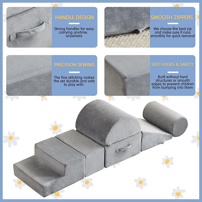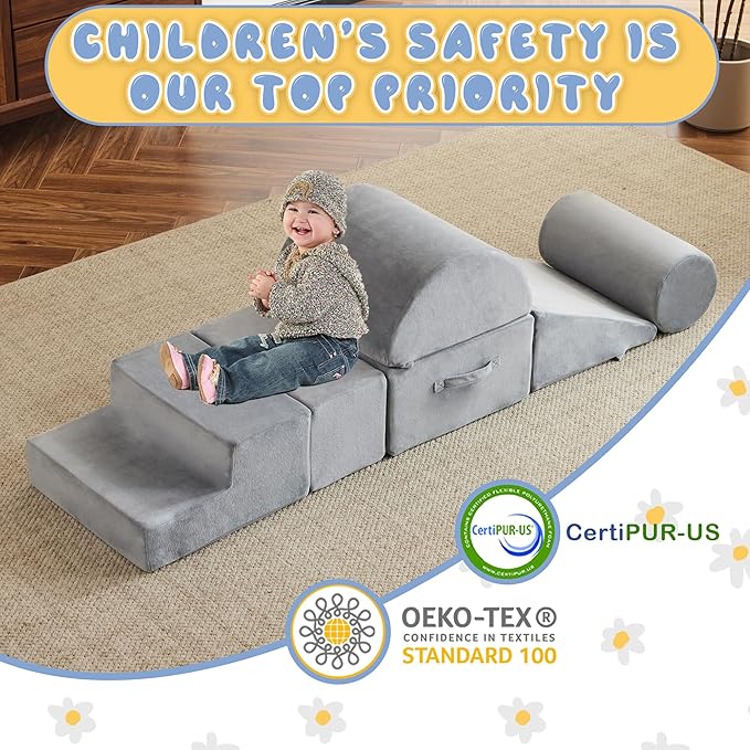 • 【EASY TO SETUP&COLLECT】: The foam climbing blocks set is easy to detach with smooth zippers, hidden zippers and handles to carry considerately designed for kids. machine washable covers, you can wash them anytime for brand-new look. Your babies will absolutely love this soft play equipment! Should you have any query please feel free to contact us , we will reply immediately.