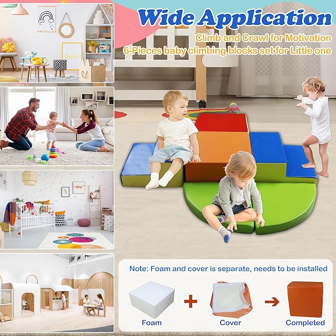 • 【Easy to Use】The foam climbing block set is designed for easy assembly and store with smooth zippers, cover is removable and machine washable. Its waterproof nature allows for simple maintenance, you only need to wipe it with a damp cloth during the day. Note: Foam and cover is separate, needs to be installed. Open the package and leave it for 24-48h to allow the foam blocks to return to a fluffy state, then put foam into cover.
