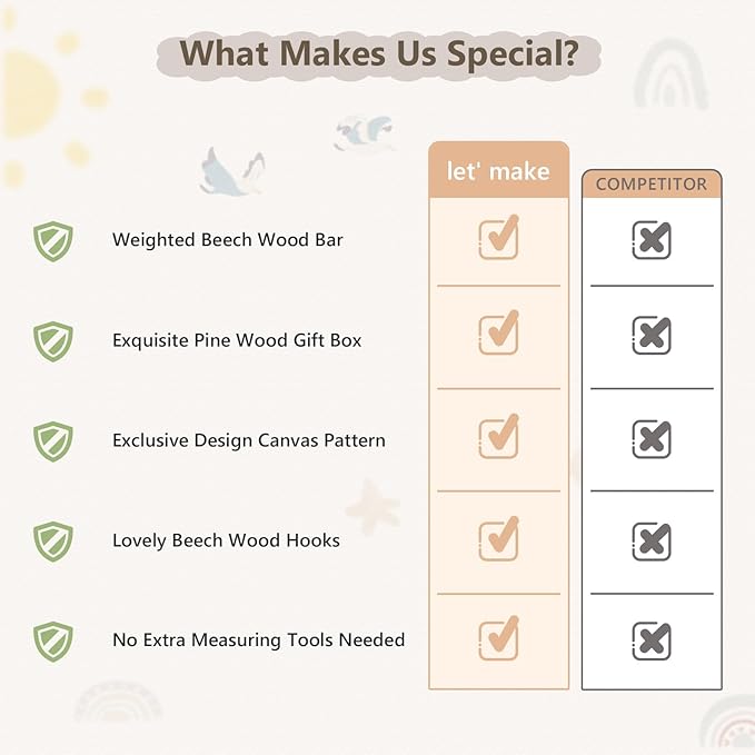 • 🌈𝑪𝒉𝒂𝒓𝒎𝒊𝒏𝒈 𝑫𝒆𝒔𝒊𝒈𝒏 𝑭𝒐𝒓 𝑾𝒂𝒍𝒍: Adorned With Hand-Painted Rainbow And Eucalyptus Designs On Durable, Waterproof Canvas, Matched With Rainbow/Bird Beechwood Hooks. The Soothing, Neutral Color Make Our Growth Chart Perfect Fits Both Little Boys And Girls Nursery Decor, Adding A Warm Touch To Your Home While Complementing Bohemian-Style Decor.