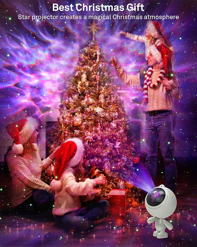 • Astronaut Galaxy Projector - The cute star projector illuminates your space with 10 stunning and soothing lighting effects. Transforms any room into a breathtaking celestial wonderland, casting dazzling galaxies and twinkling stars onto walls and ceilings, such as bedroom, living room, kid's room, nurseries, game room. Make your cozy space more special and charming.