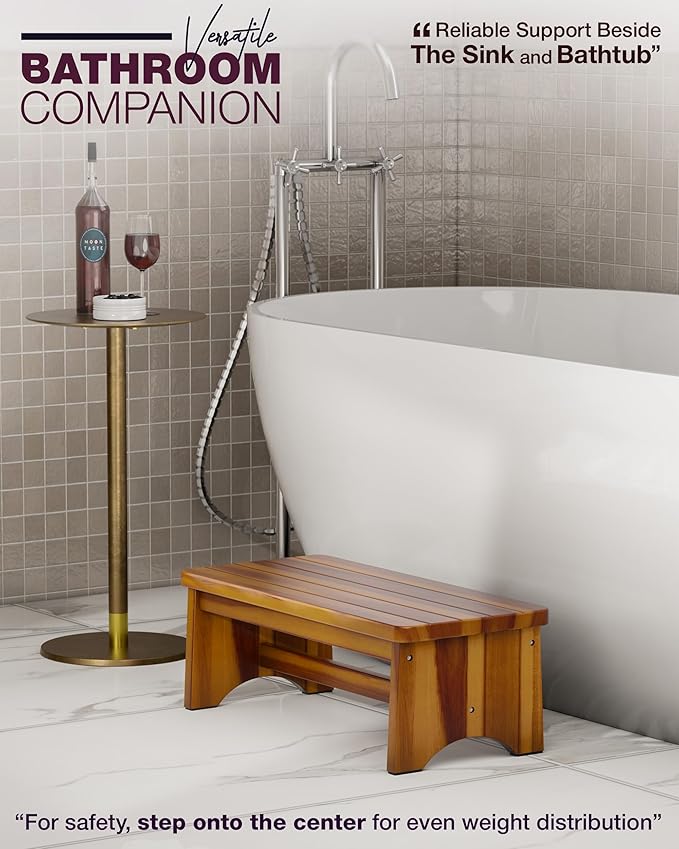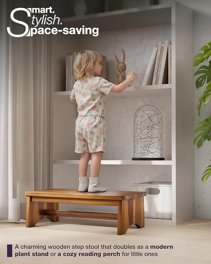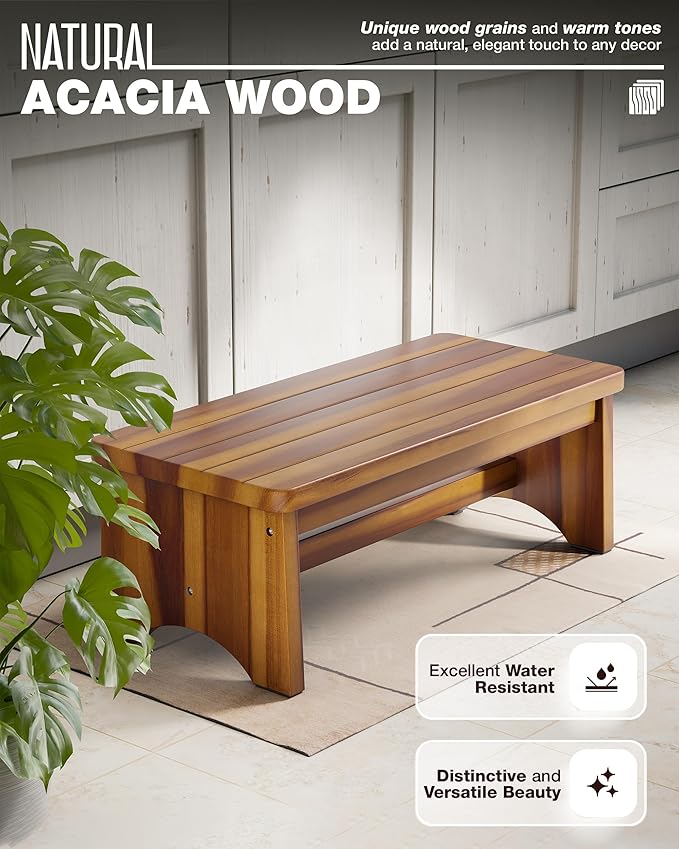 • 🌳 PREMIUM NATURAL ACACIA WOOD: Expertly crafted from high-quality Acacia wood, this step stool offers superior water resistance, exceptional durability, and a naturally elegant wood grain finish that enhances any room's decor.
