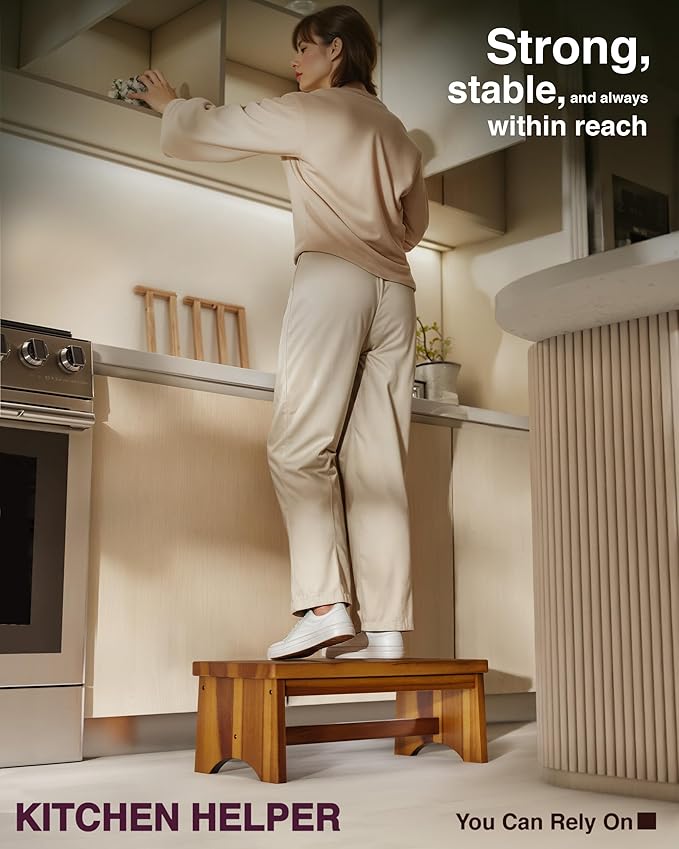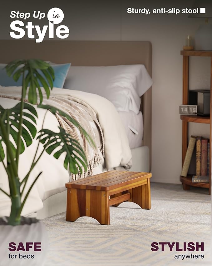 • 🏑 MULTI-PURPOSE FUNCTIONALITY FOR EVERY SPACE: More than just a step stool, this versatile piece fits seamlessly into any room. Use it in the bedroom for high beds, the kitchen for shelves, or the bathroom for an extra boost. It also serves as a plant stand, a base for an air purifier, or a reliable outdoor companion by the pool. Functional, stylish, and durableβ€”perfect for both indoor and outdoor use.