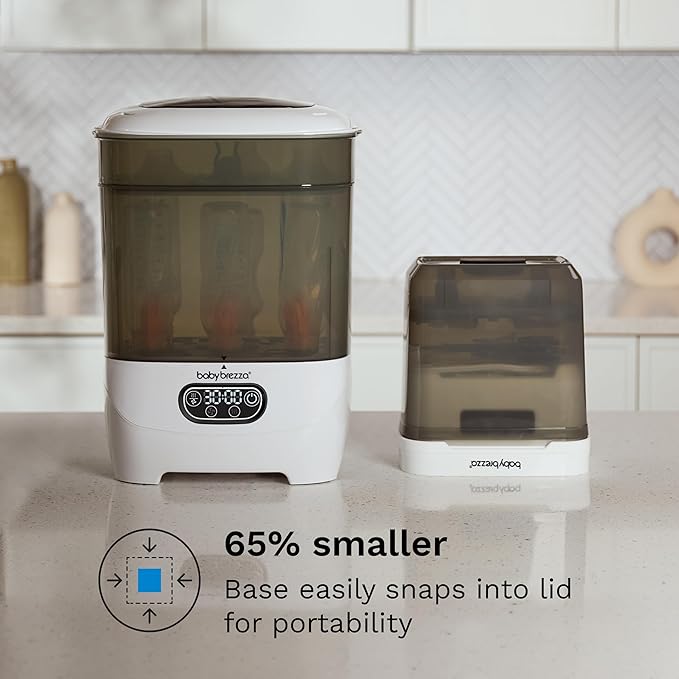 • 65% SMALLER THAN OTHER STERILIZER DRYERS: Ideal for travel, smaller kitchens, bedrooms, nurseries, bathrooms or grandma’s house; Perfect size to sterilize & dry bottles & pump parts wherever you are; Products remain sterilized inside for 48 hours