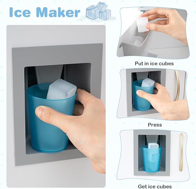 • 【Realistic Role-Play Cooking Experience】The kitchen set for kids consists of microwave, telephone, 2 stoves, ice maker, fridge, dishwasher and play sink with rotary faucet and knobs. This toy kitchen set stimulates real kitchen scenes and provides kids with unlimited fun of pretend play. Moreover, the “click” sounds of the oven knob add more realistic cooking fun.