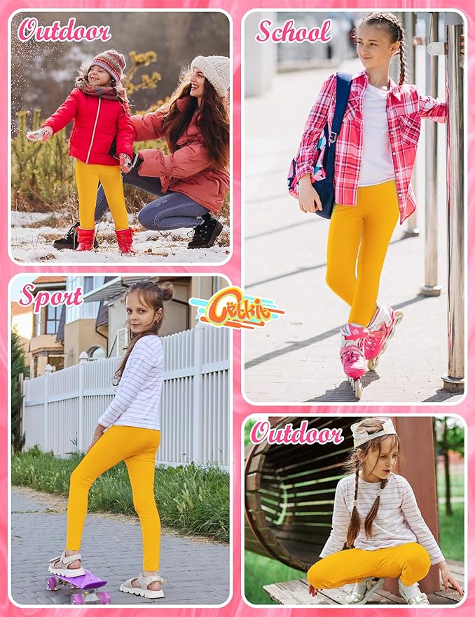 • 【High-Quality Warm Leggings for Girls】 These girls' leggings are made of 94% polyester and 6% spandex. The fabric is stretchy, ultra-soft, and breathable, making these girls' athletic leggings very comfortable and flexible. All Kids Leggings are made from premium four-way stretch fabric, with an elastic band sewn into the waistband, which lies flat on the waist for a comfortable and good fit.
