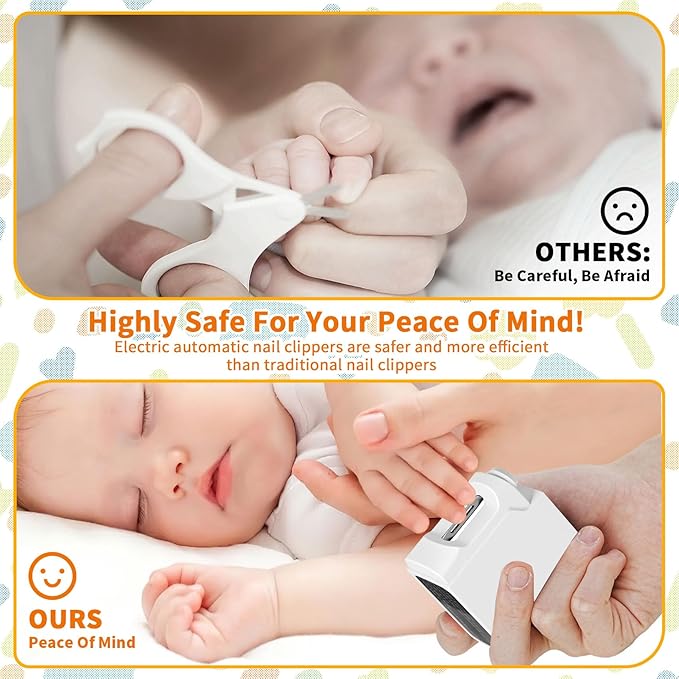 • Low Noise & LED Light: Have you been struggling with your baby's reluctance to trim their nails? Then you need a baby nail clipper that can easily trim your sleeping baby's nails at night without waking him up. Our nail trimmer for baby are equipped with LED auxiliary lights and operate with low noise. Trimming your baby's nails is no longer a hassle!