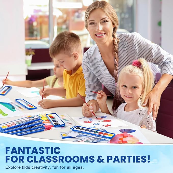 • Multi Purpose - Whether you use it to create colorful paintings or paint on crafts made of different materials such as stone, glass, ceramics, clothing, etc., these watercolor paints are versatile tools. Watercolor paint set is perfect for use at school, home, painting parties and more. Not only is it a great choice for school supplies, it's also a perfect gift for little kids, teens, and beginners.